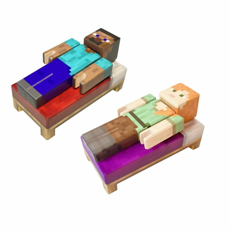 Velikost: Každá dřevěná Minecraft postel je veliká 8 x 4 x 2,2 cm, což je přesně na velikost malých figurek.