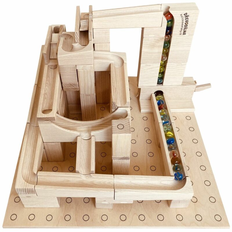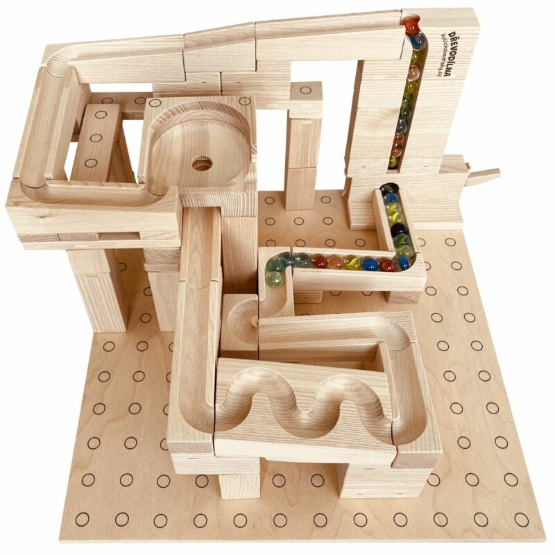 Vstupte do světa tvoření! Pokud máte rádi dřevěné hračky, skleněné duhové kuličky a rádi stavíte, magnetická kuličková dráha je pro vás ideální. Spojuje všechno, co máte rádi. Postavte dráhu, naplňte zásobník kuličkami, mačkejte páčku a sledujte, jak barevné kuličky sviští po klikatých drahách a překonávají překážky.