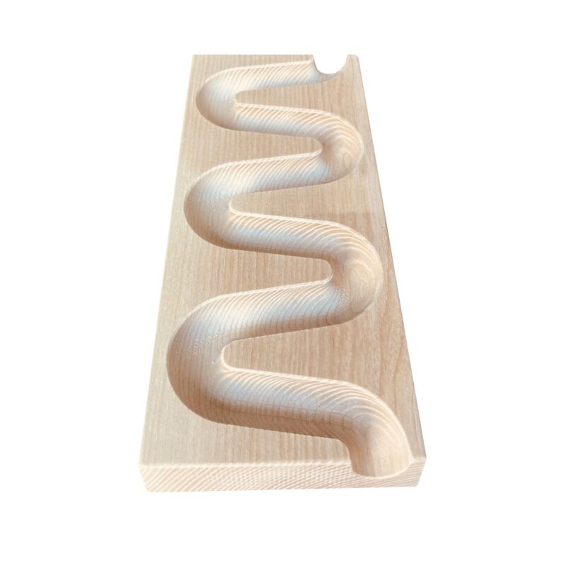 Materiály a bezpečnost: Velký dřevěný cik-cak blok na kuličky je vyroben z kvalitního sušeného dřeva. Dřevo necháváme v jeho přirozené kráse, včetně všech jeho zvláštností, jako jsou suky, přechody a zabarvení. Díky hladkému obroušení a laku s certifikací pro dětské hračky je jejich použití zcela bezpečné.